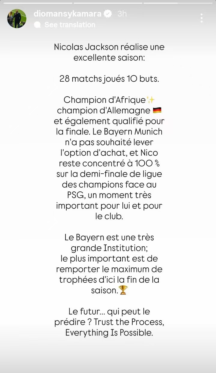 非洲冠军、德国冠军,还晋级了(杯赛)决赛。拜仁慕尼黑不想激活买断选项,而杰克逊将100%专注于对阵巴黎圣日耳曼的欧冠半决赛,这对他和俱乐部来说都是非常重要的时刻。